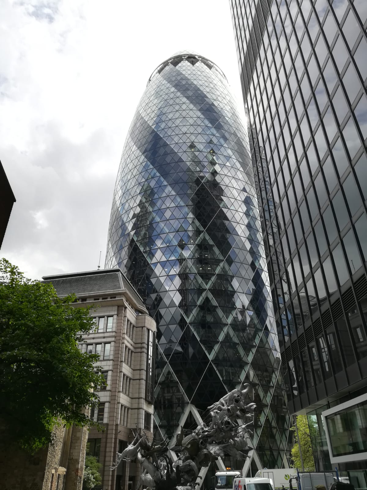We had difficulties to find the Gherkin, it was hidden by many skyscrapers. Its form was the most original of The City. We tried to go up but the security guard forbade us.